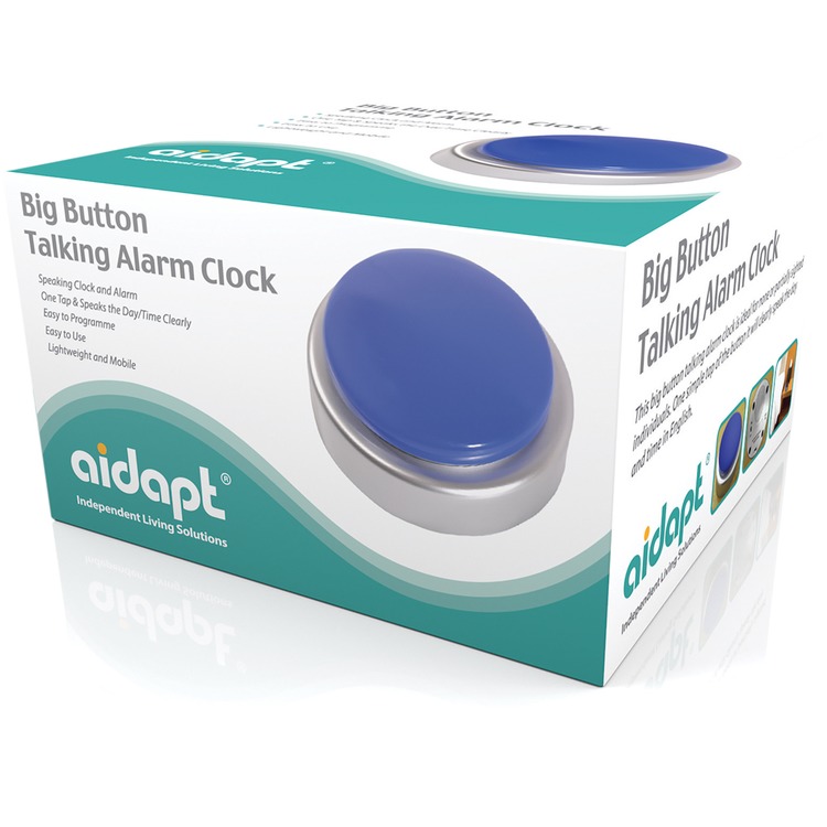 This big button talking alarm clock has a single large button and is ideal for visually impaired or partially sighted individuals - or those with dementia. One simple tap of the button it will clearly speak the day and time in English. It is easy to programme as the clock will speak the numbers clearly while you set the date, time & alarms. Powered by 3 x AAA Batteries (Not Included)