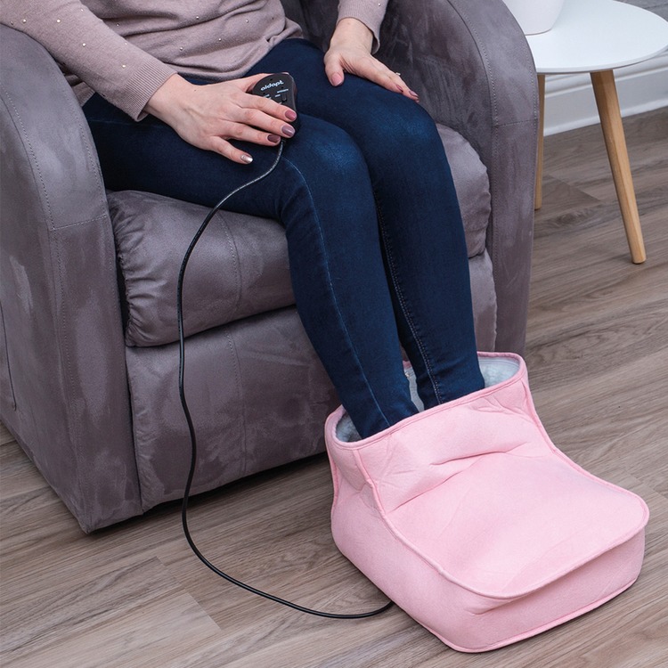 The handheld controller adjusts both heat and massage; soothing cold, tired or aching feet.