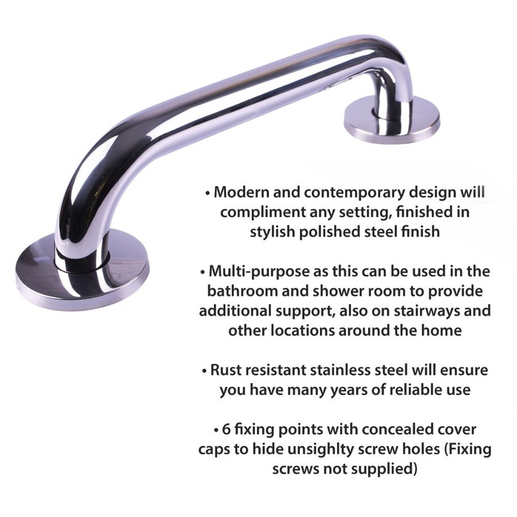 300mm Stainless Steel Polished Grab Bar ideal for use in and around the home, particularly bathrooms and showers for extra support and peace of mind.