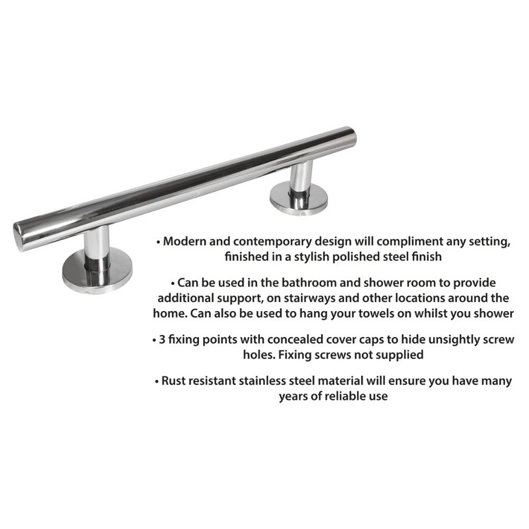 3 fixing points with concealed cover caps to hide unsightly screw holes. Fixing screws not supplied.