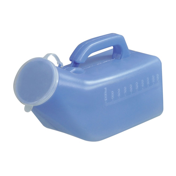 The Male Urinal has an integrated carry handle and anti spill lid, a useful feature not always included in portable male urinals.