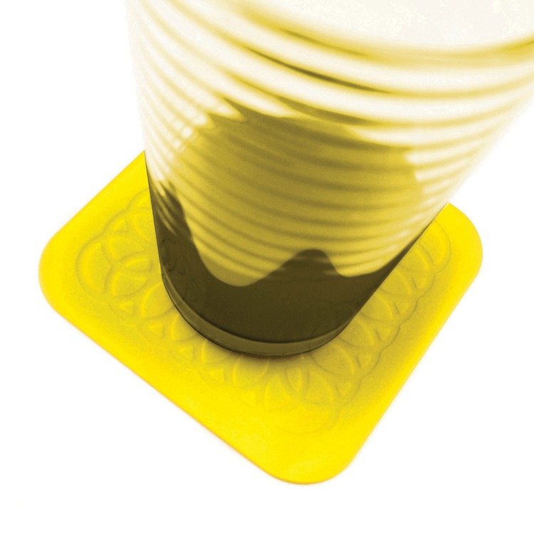 Tenura Yellow Anti Slip Silicone Rubber Square Coaster (Pack of 4)