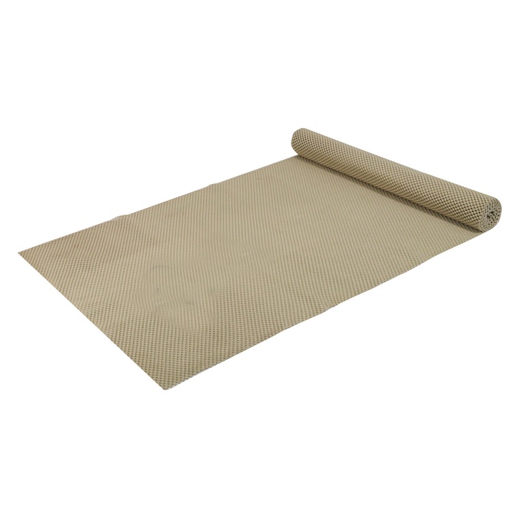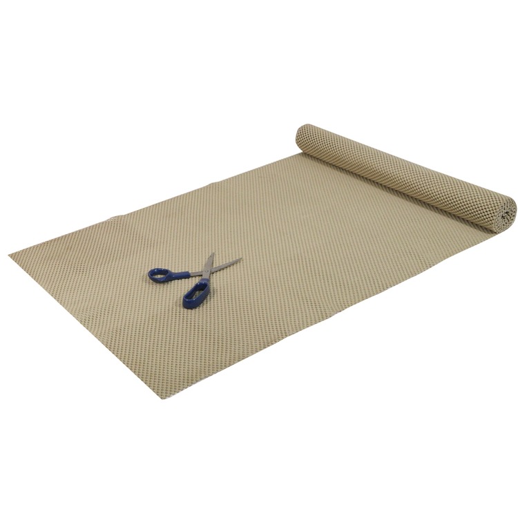 This fabric has a non slip foam applied to a polyester mesh, giving it excellent stability, yet can be easily cut to any shape to suit any object or surface. It makes an excellent draw and shelf liner too.
