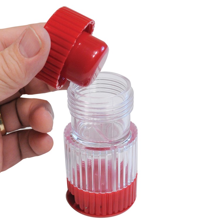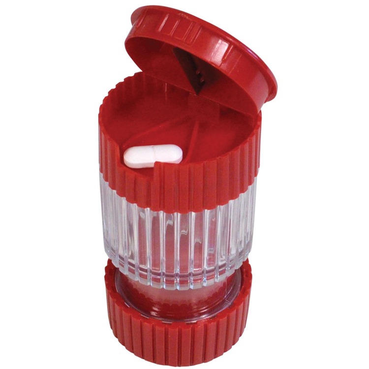This handy device is divided into 3 sections and is an ideal tablet aid with multiple tools in one compact, easy-to-clean unit that will take up very little space in a pocket or bag. Simply lift the hinged lid, pop in a pill and close the lid to cut or split the pill. Unscrew the base, insert a tablet, then screw the base in again to crush the pill into a powder. On removing the lid you will find compartments to store your pills and tablets.